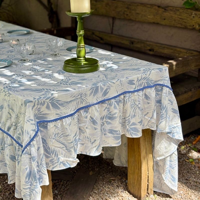 Mantel Paz / Lino Blanco con Volados Amarillos -